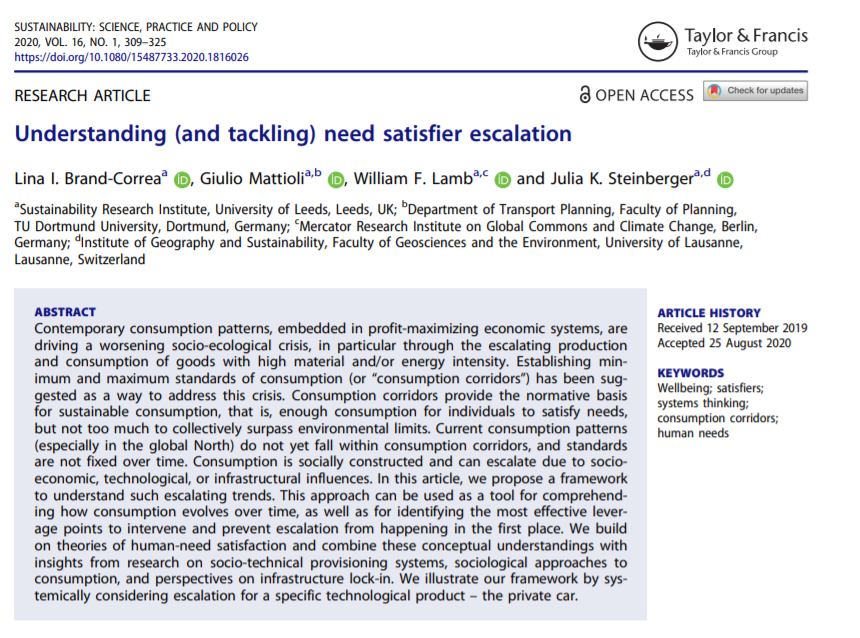 Giulio Mattioli New Liliproj Paper With Librand3 Lamb Wf Jksteinberger On How The Consumption Associated With Need Satisfaction Can Escalate Beyond Environmental Limits And What To Do About It Part