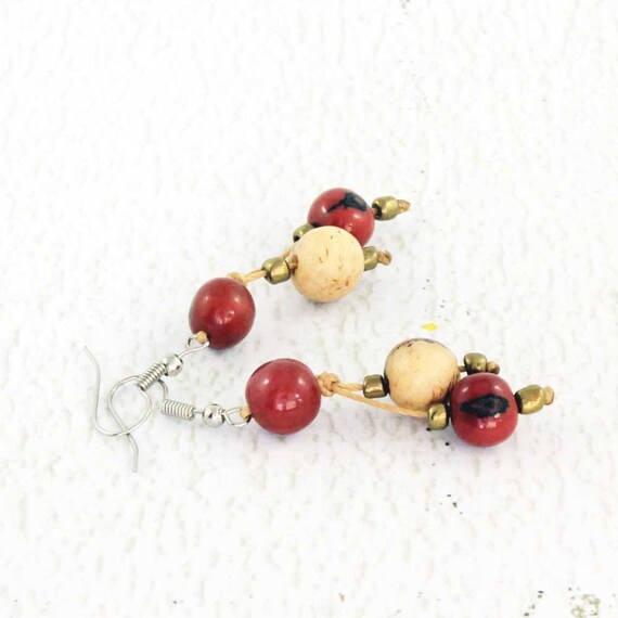 Red Dangle Earrings Acai Beads Fair Trade Eco Friendly Etsy