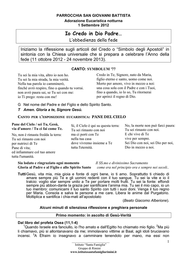 Io Credo In Dio Padre Istituto Santa Famiglia