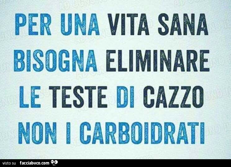 Per Una Vita Sana Bisogna Eliminare Le Teste Di Cazzo Non I Carboidrati Facciabuco Com