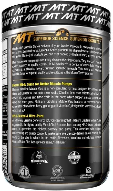 Amazon Com Muscletech L Citrulline Malate Powder Pre Workout Nitric Oxide Booster Increase Blood Flow Vasodilation Workout Supplement For Men Women Unflavored 17 35 Ounce Health Personal Care