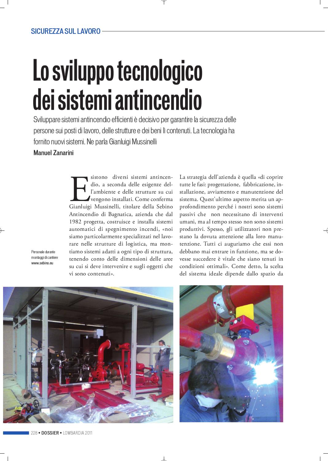 Lavori di messa in sicurezza per la normativa antincendio. Sebino Antincendio, leader italiano dell’impiantistica e controllo remoto degli impianti antincendio e Security, si è quotata con successo sul sistema AIM, gestito da Borsa Italiana Arkios Advisor di Sebino S.p.A. Antonella poloni sas in qualita' di agente unipolsai assicurazioni div.