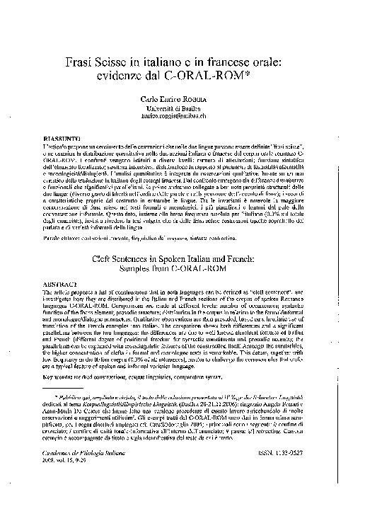 Pdf Frasi Scisse In Italiano E Francese Orale Evidenze Dal C Oral Rom Carlo Enrico Roggia Academia Edu