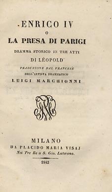 Enrico Iv O La Presa Di Parigi Dramma Storico In 3 Atti Traduzione Dal Francese Dell Artista Drammatico Luigi Marchionni Libreria Antiquaria Gozzini