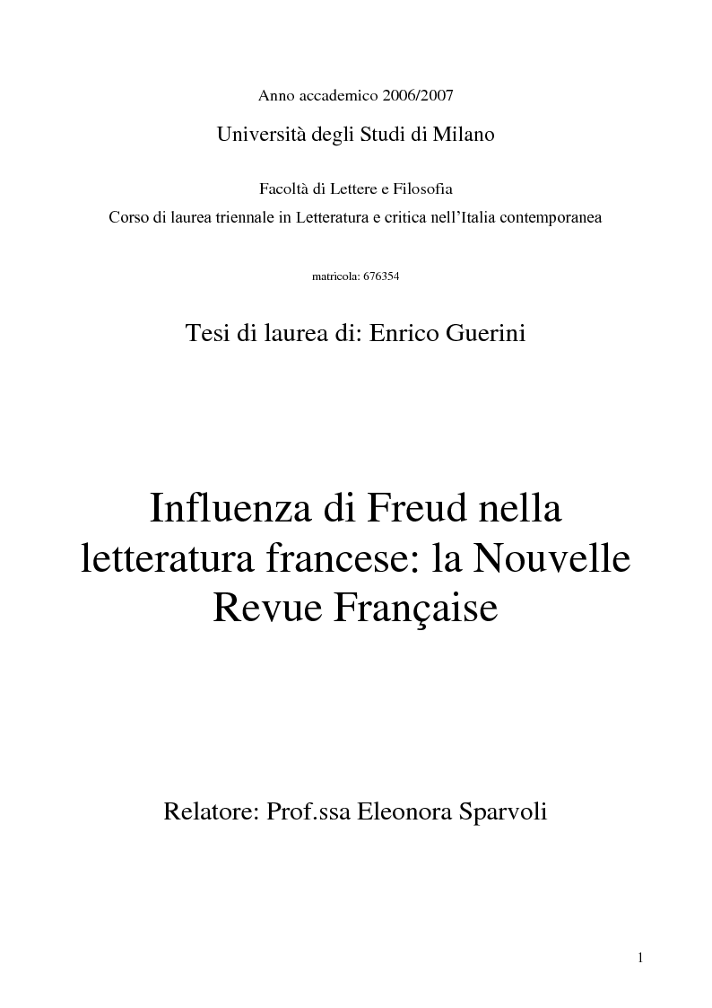 Influenza Di Freud Nella Letteratura Francese La Nouvelle Revue Francaise Anteprima Tesi Pagina 1 Di 11 Tesionline