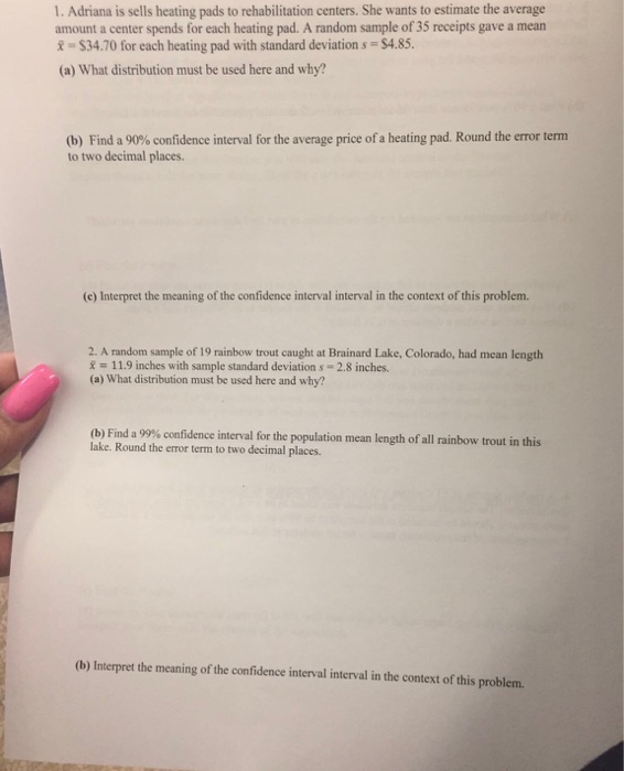 Solved Adriana Is Sells Heating Pads To Rehabilitation Ce Chegg Com