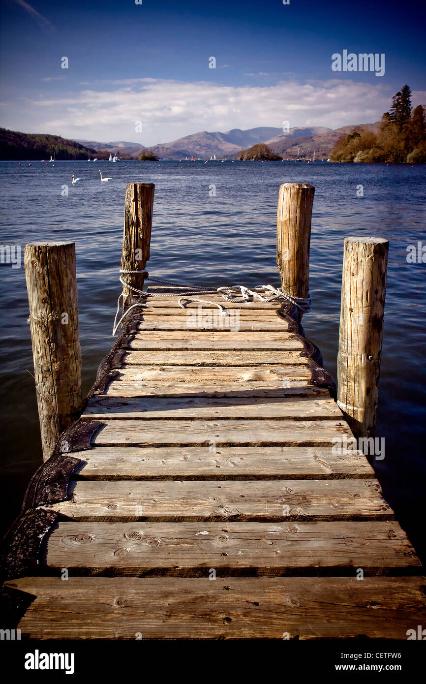 Una Vista Verso Il Basso Di Un Pontile In Legno Al Lago Windemere Foto Stock Alamy