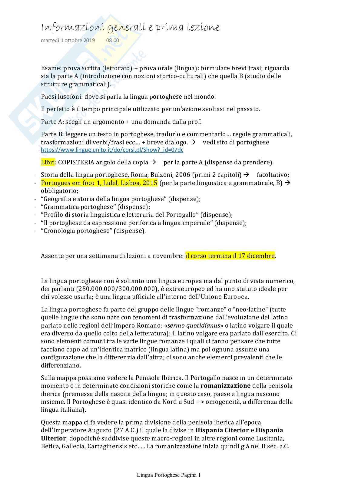 Appunti Lingua Portoghese Prof Ssa Abbati Docsity