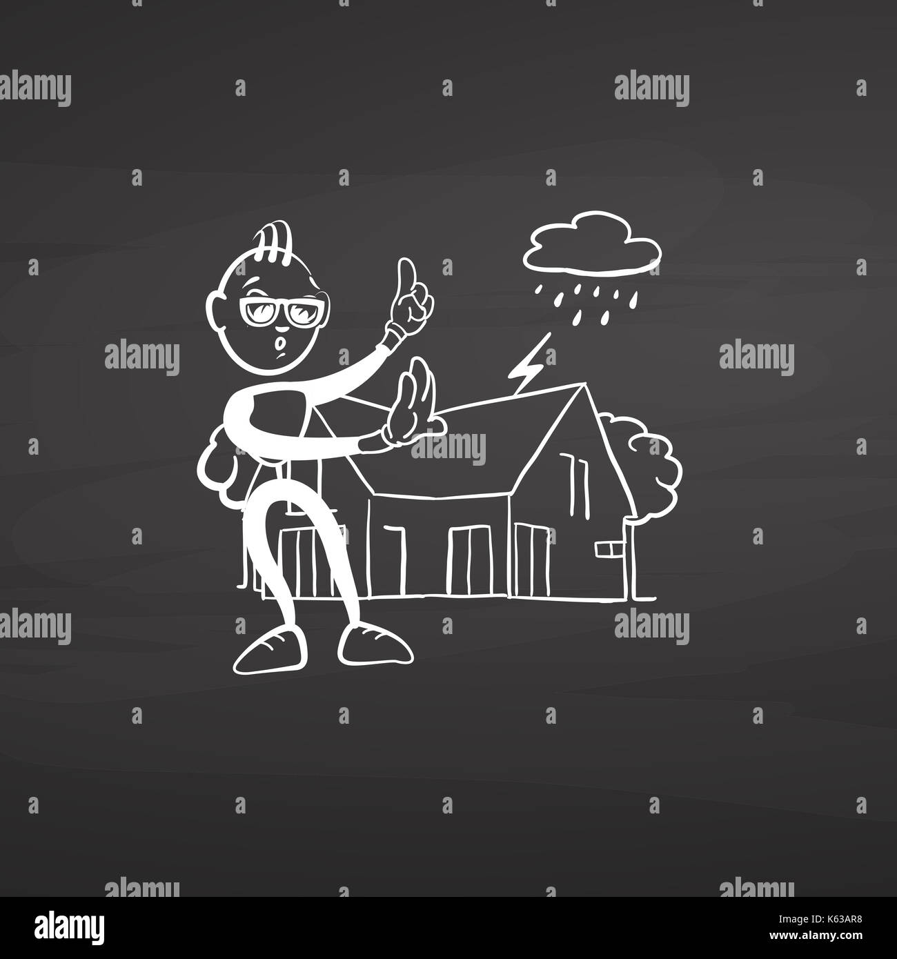 Casa Il Concetto Di Protezione Schizzo Su Lavagna Handdrawn Disegno Vettoriale Pulire Delinea In Stile Vintage Blackboard Foto Stock Alamy
