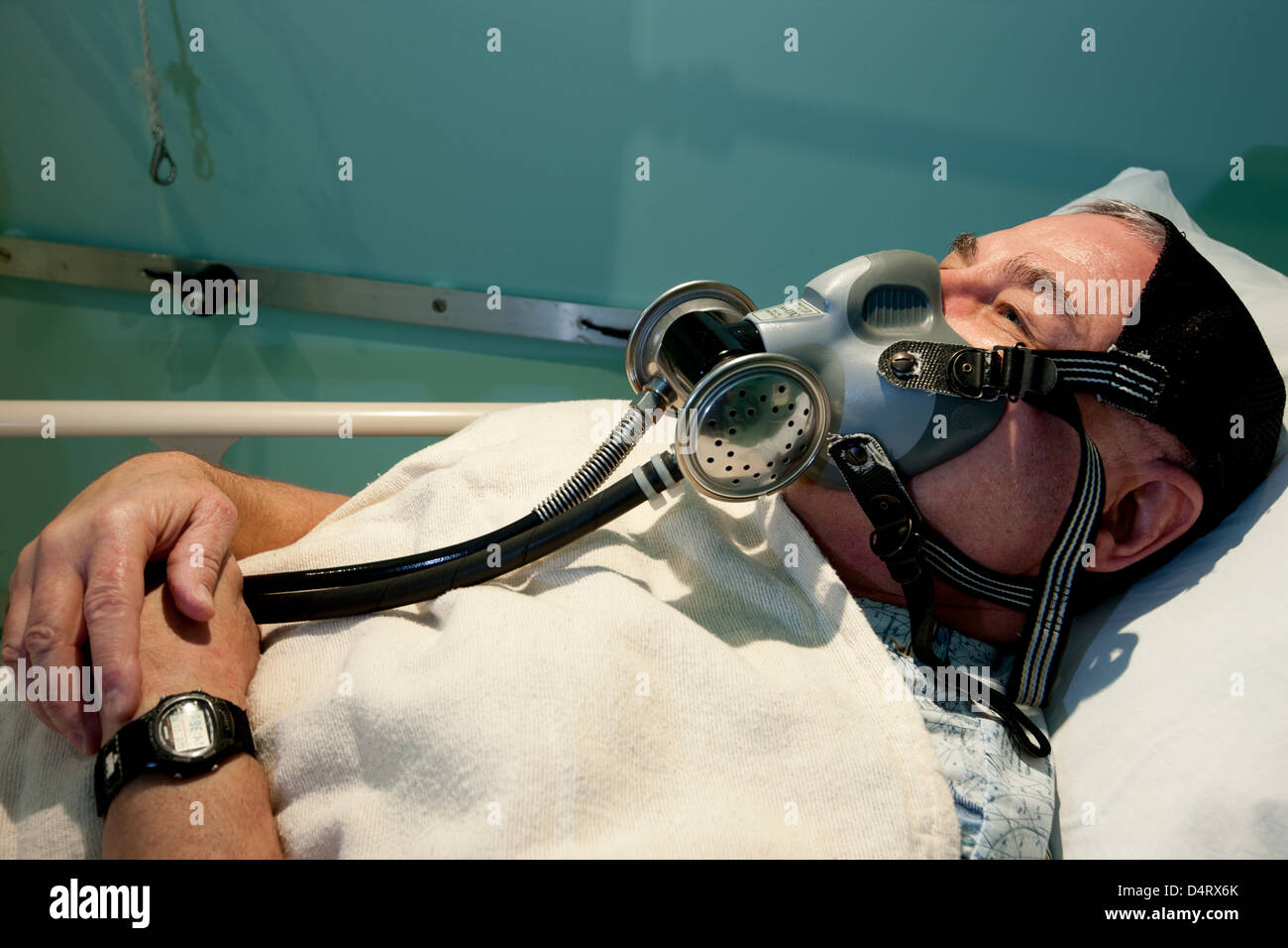 Medico Assiste Paziente Portatile In Camera Iperbarica In Medico S Office Foto Stock Alamy