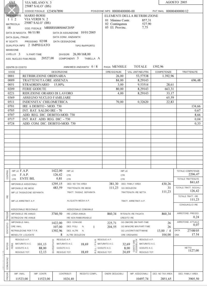 E con una manzione inferiore, a me e capitato addirittura che mi sono sentito male al cantiere ed ho avuto. Medolago (BG) Via Alessandro Manzoni n° 33 Piva CapSoc€,00 IV RIdi BG REABG Tel 035 Fax 035 494. Calcolo busta paga buste paga false Siamo il tuo partner serio ed affidabile Servizi di calcolo busta paga buste paga false Oltre al servizio dell'elaborazone e di calcolo busta paga buste paga false , il nosto Studio diviene pertanto un supporto qualificato per il compimento delle ordinarie nonché straordinarie operazioni aziendali, e per il corretto adempimento delle prescrizioni.