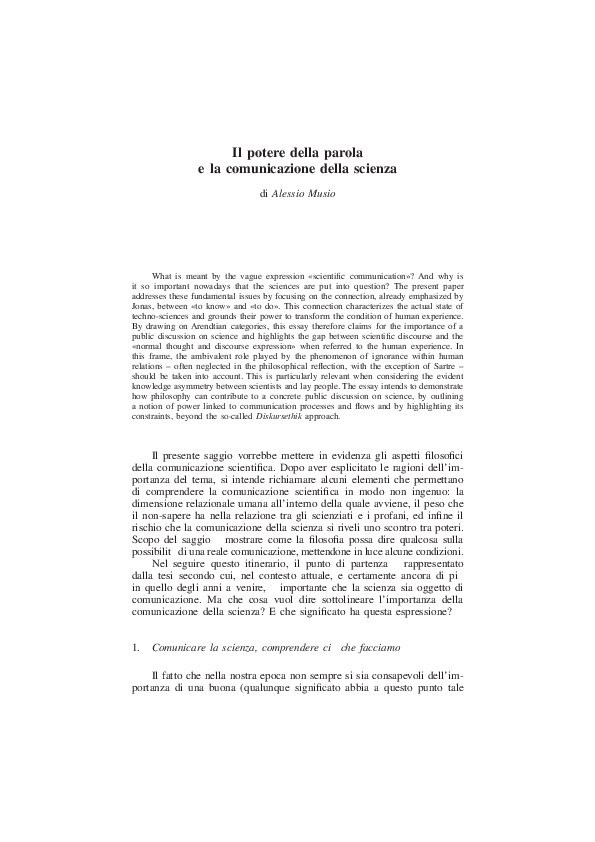 Pdf Il Potere Della Parola E La Comunicazione Della Scienza Alessio Musio Academia Edu