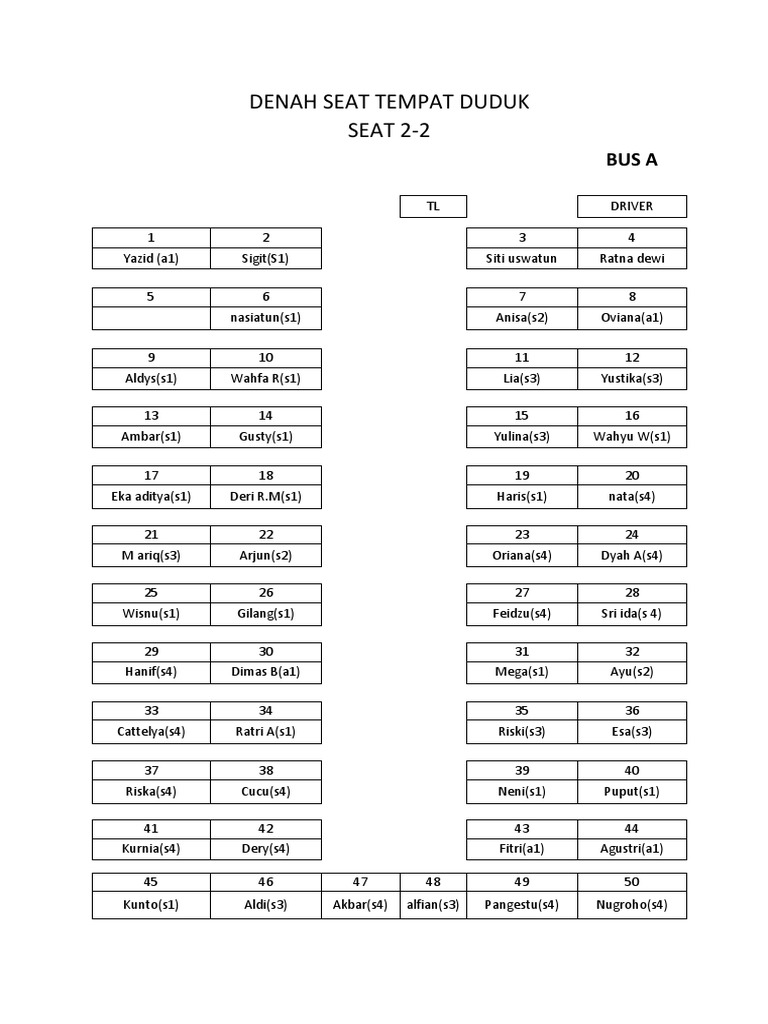 Denah Tempat Duduk Bus Isi 50 Seat 2 2 Sederet Tempat