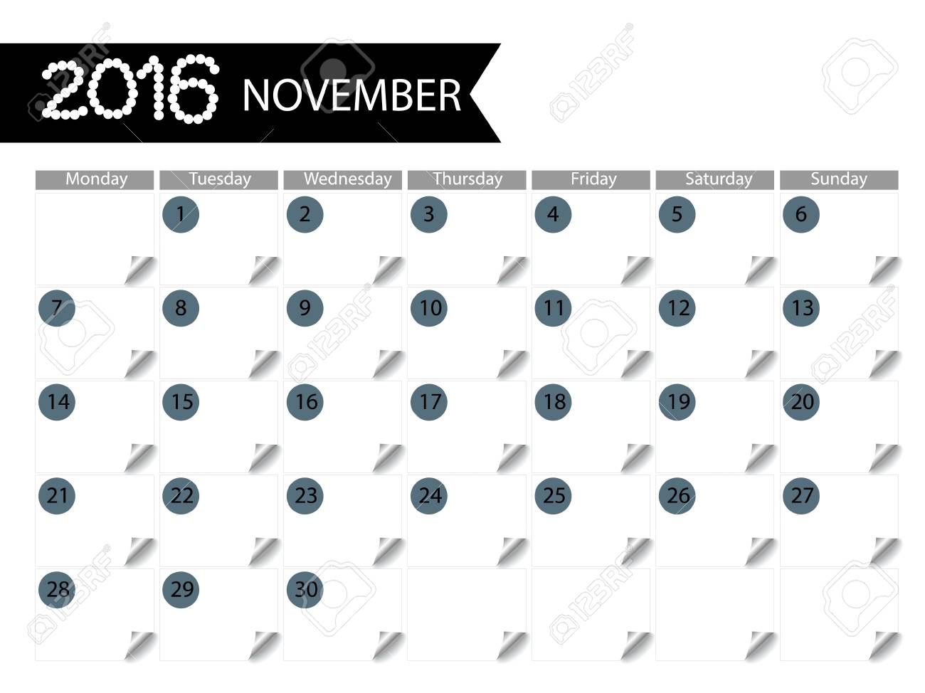 Vettoriale Mese In Inglese Per Il Mese Di Novembre 16 Da Lunedi A Domenica Image