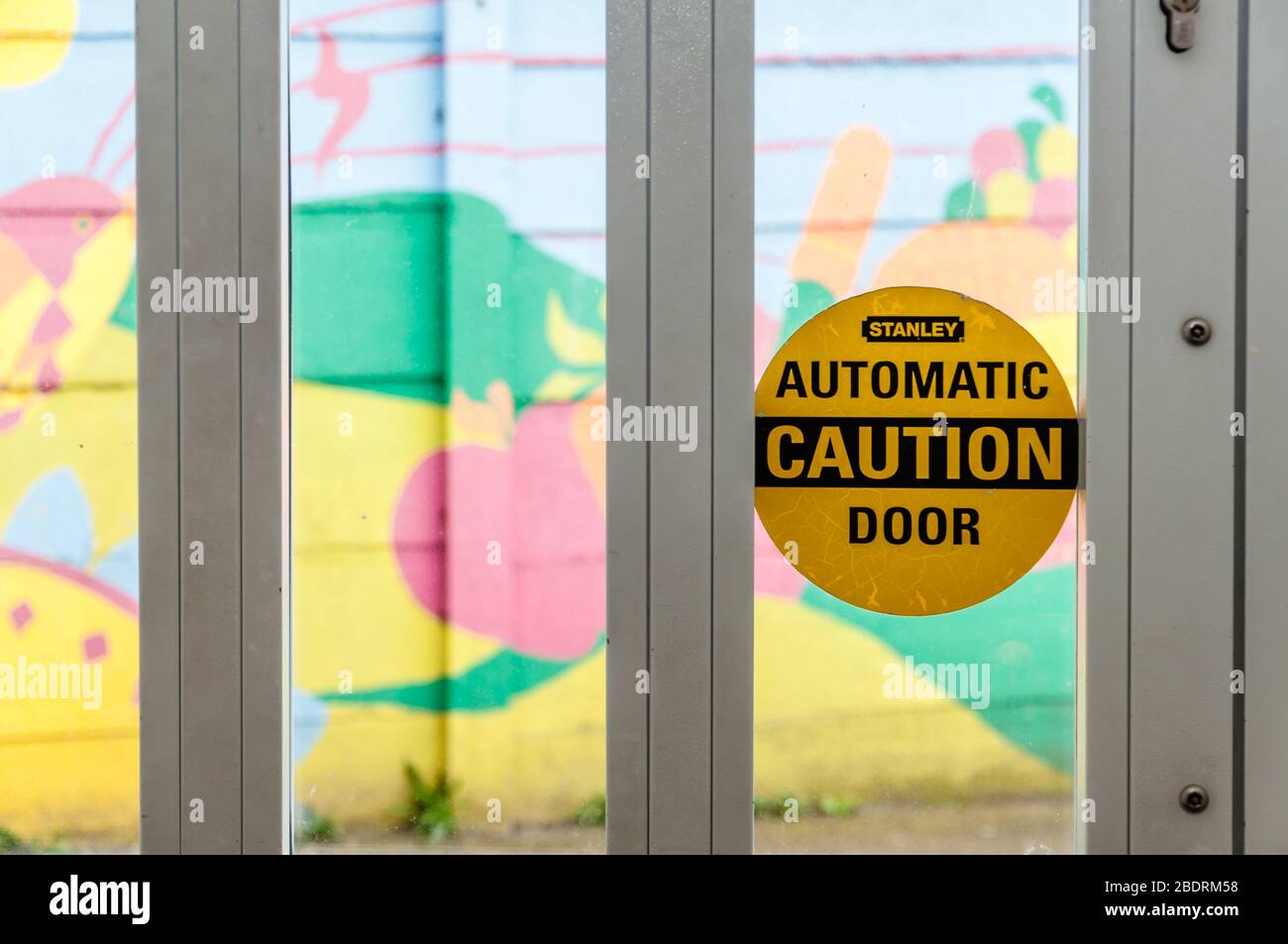 Segno Divertente Sulla Porta Di Vetro Rotta Immagine Stock Immagine Di Obbligazione Entrata