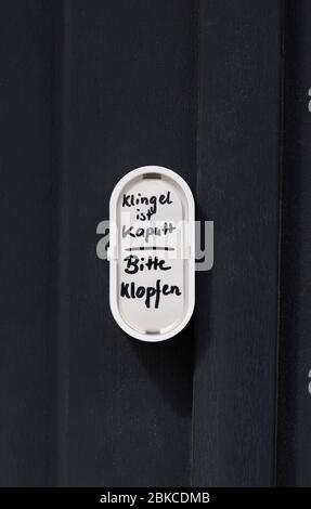 Avviso Su Una Porta D Ingresso Campana Rotta Si Prega Di Bussare Foto Stock Alamy