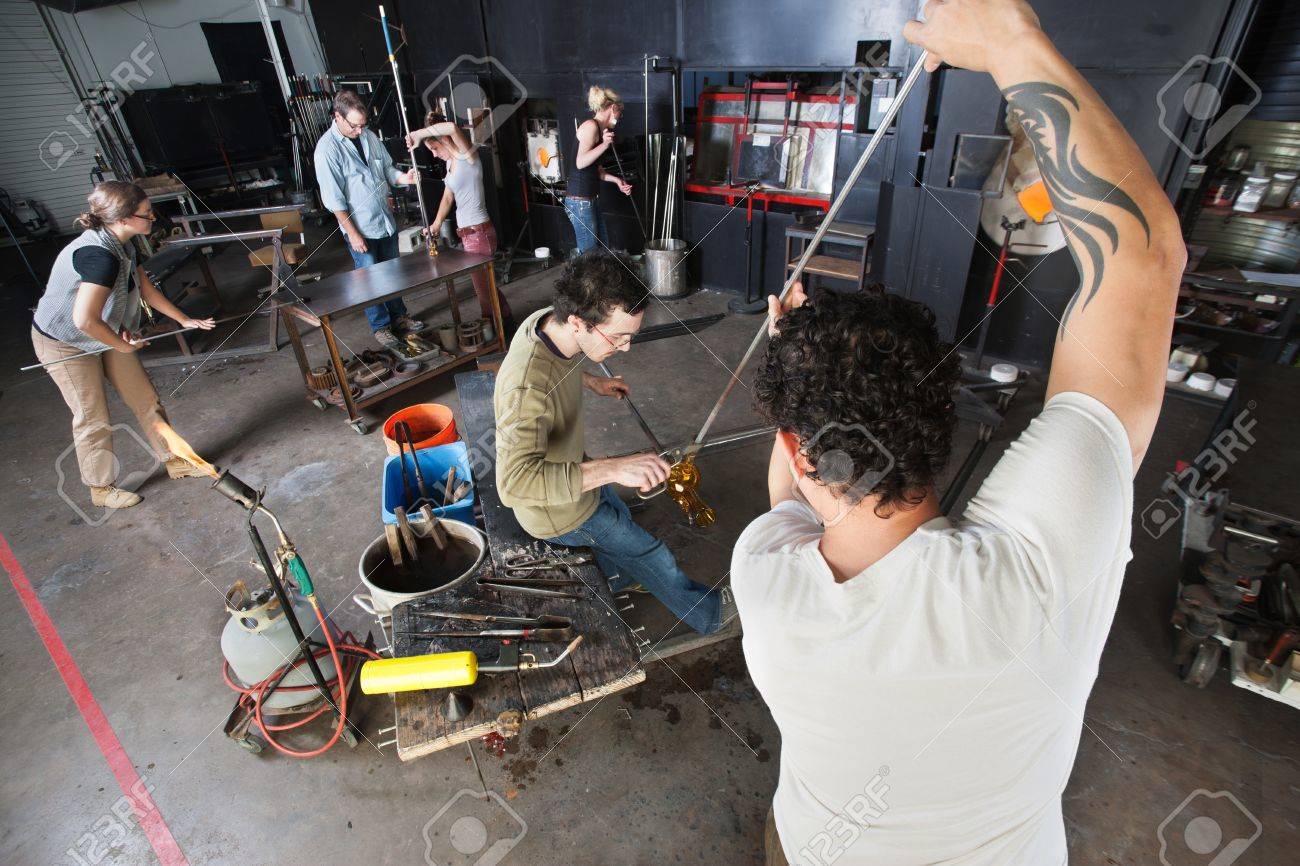 Group Of Students Busy In Glass Art Workshop Stock Photo Picture And Royalty Free Image Image