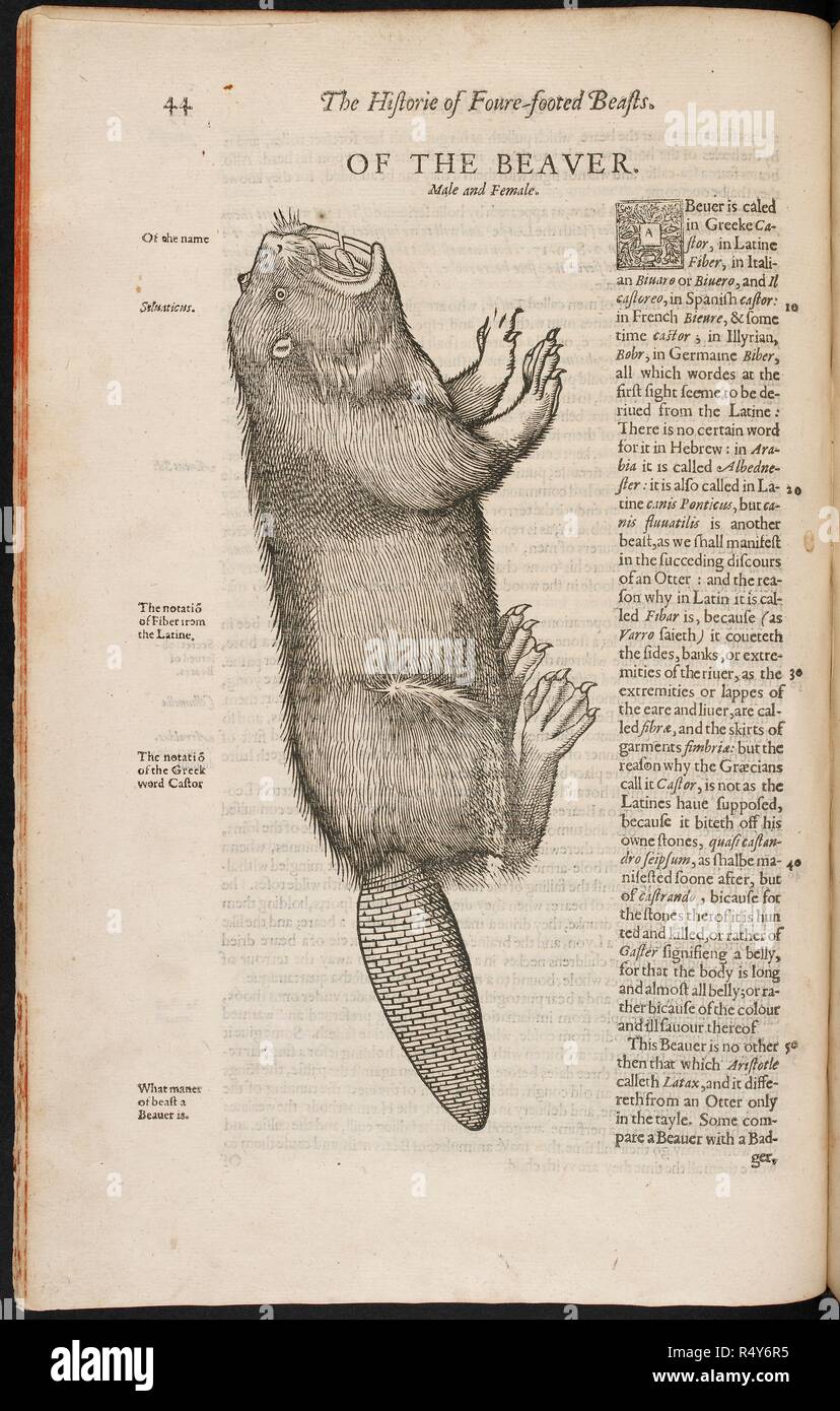 Una Illustrazione Di Un Castoro L Historie Di Foure Footed Beastes Londra 1607 Fonte 444 I 4 Pagina 44 Lingua Inglese Autore Topsell Edward Foto Stock Alamy