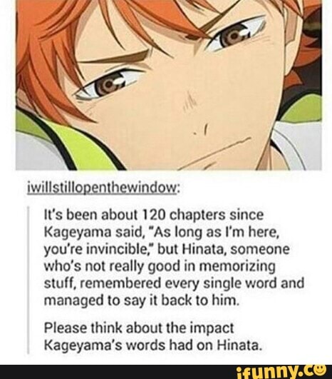 It S Been About 1 Chapters Since Kageyama Said As Long As I M Here You Re Invincible But Hinata Someone Who S Nel Really Good In Memorizing Stuff Remembered Every Single Word And Managed To