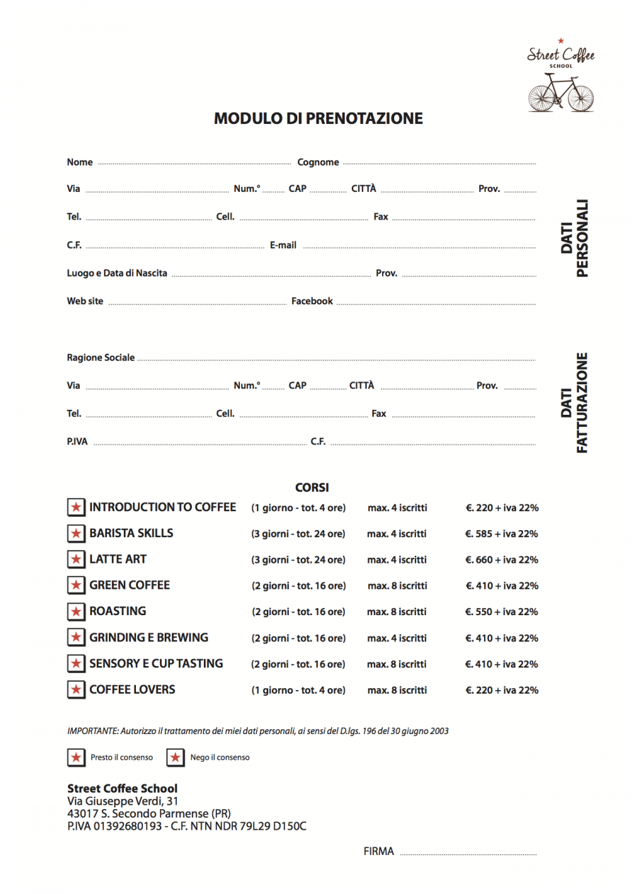 Modulo Di Iscrizione Street Coffee School Andrea Antonelli