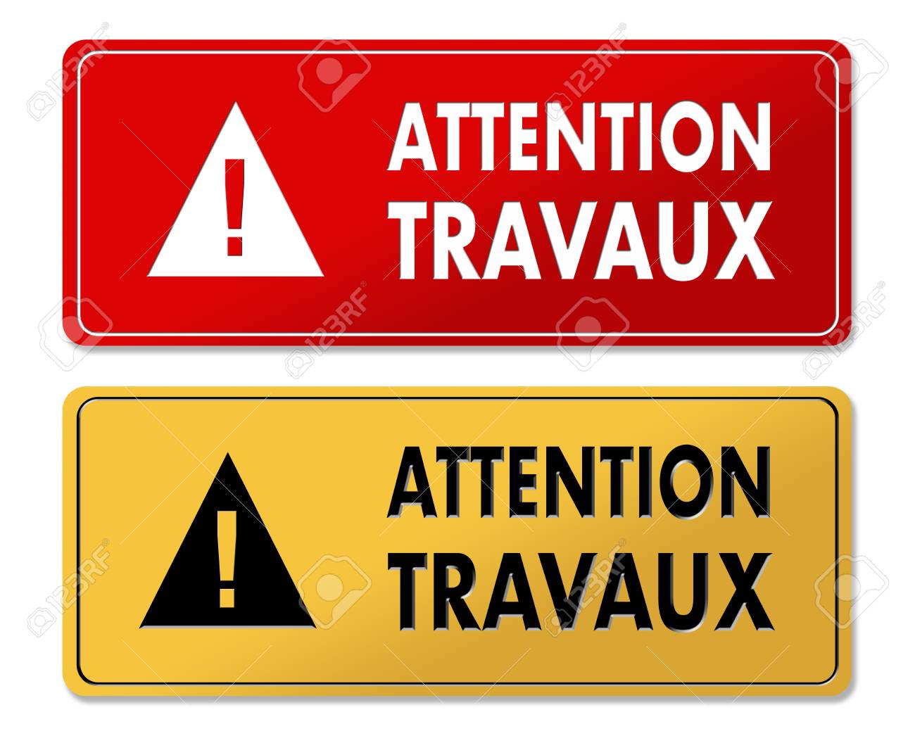 Immagini Stock Accurati Lavori In Corso I Pannelli Di Avvertimento In Traduzione Francese In 2 Colori Image
