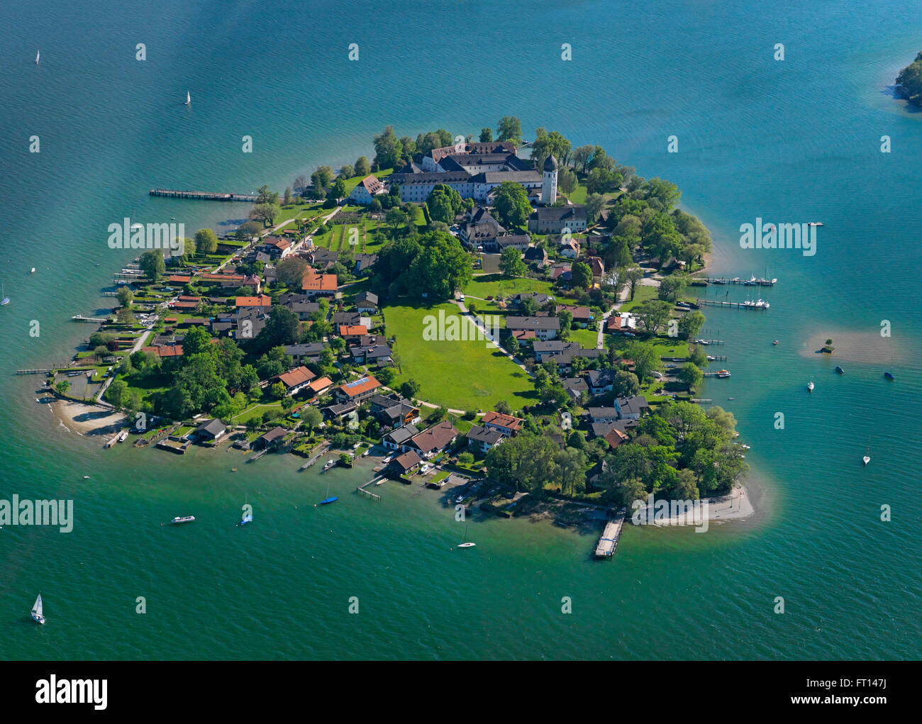 Aerial Shot Of Fraueninsel With Gstadt Am Chiemsee In Background Stock Photo Alamy