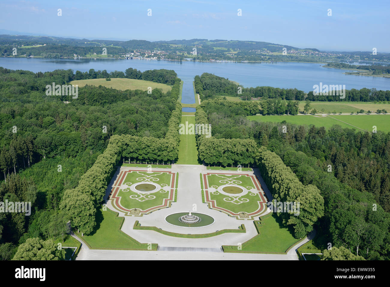 Jardin Del Palacio De Herrenchiemsee Vista Aerea La Isla Herreninsel Lago Chiemsee Baviera Alemania Fotografia De Stock Alamy
