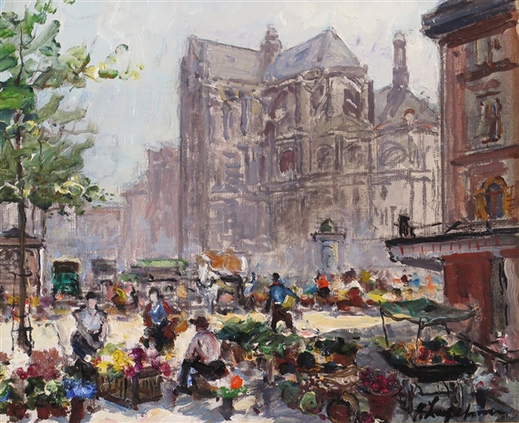 Lapchine Georges Place Du Tertre Paris With L Eglise De Saint Pierre And Sacre Coeur Mutualart