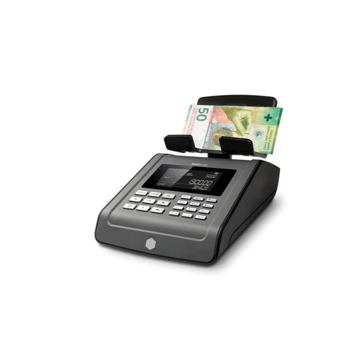 Conta rileva banconote a singola denominazione per valute Euro, USD, GBP, o CHF (selezionabili sul display), con caricamento posteriore e pannello di co.
