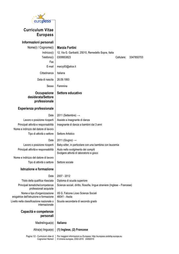 Curriculum Vitae Europass Pdf Download Gratuito