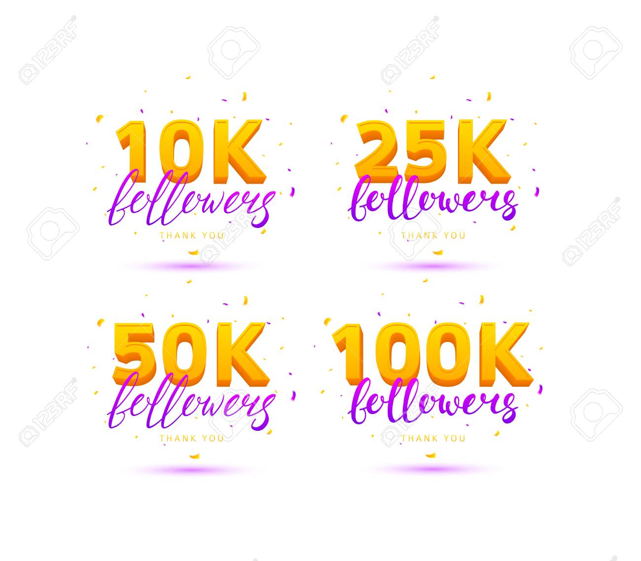 Schone Karten Mit Schriftzug Und Konfetti Vektor Illustration Mit Goldenen Logos Fur Soziale Netzwerke Symbole 10k 25k 50k Und 100k Lokalisiert Auf Weissem Hintergrund Lizenzfrei Nutzbare Vektorgrafiken Clip Arts Illustrationen Image