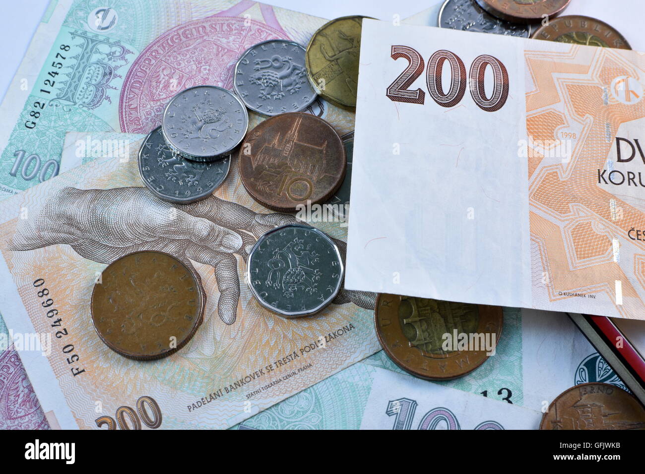Valuta Monete Banconote Corone Ceche Della Repubblica Ceca Foto Stock C Route66