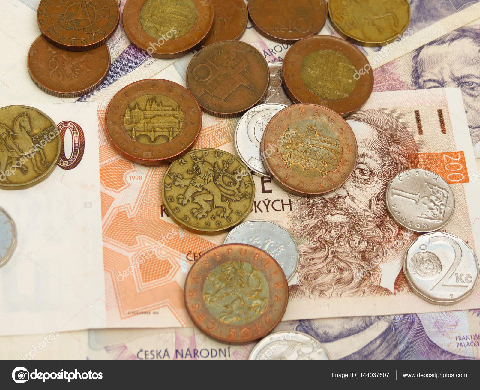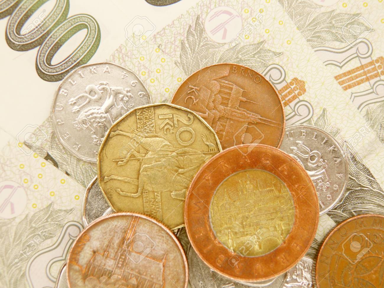 Immagini Stock Monete E Banconote Czk Corso Legale Della Repubblica Ceca Corone Ceche Image