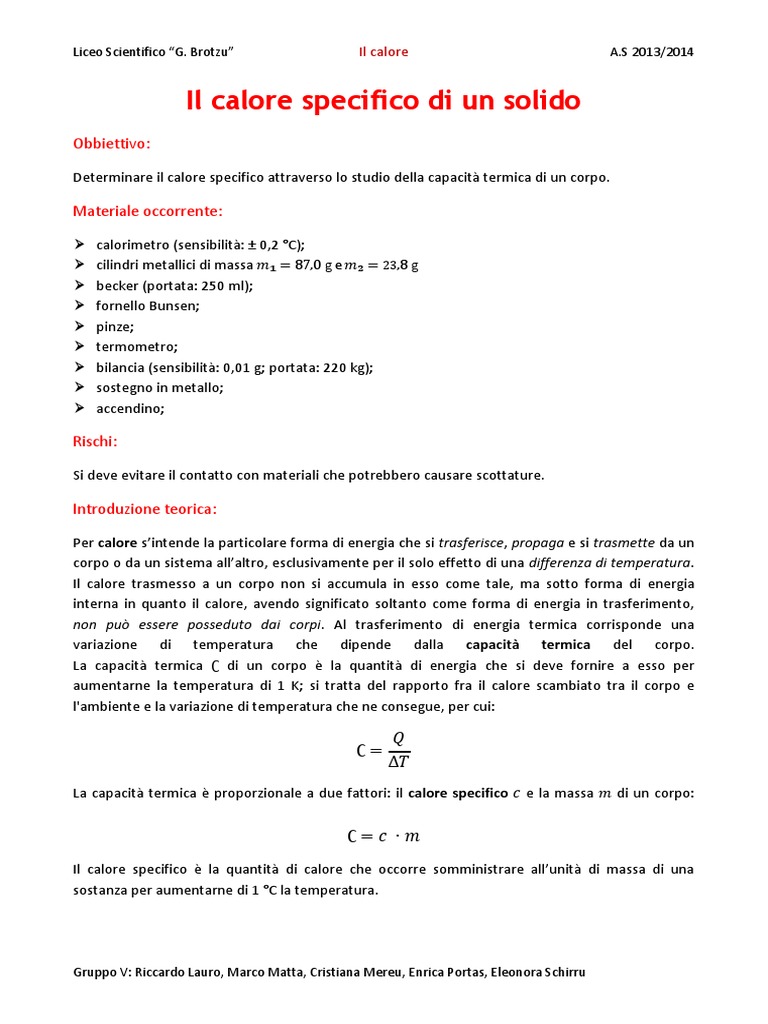 Relazione Di Fisica Sul Calore Specifico Docsity