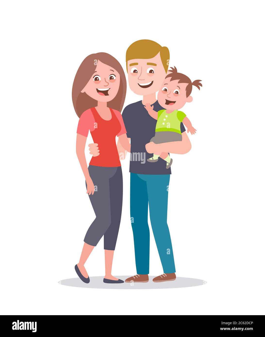 Felice Ritratto Di Famiglia Giovane Papa E Mamma Con Una Bambina Illustrazione Vettoriale In Stile Cartoon Isolato Su Bianco Immagine E Vettoriale Alamy