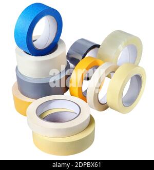 Forniture Per Ufficio Un Insieme Di Rotoli Di Nastro Adesivo Carta Plastica Vari Colori E Spessore Per Vari Scopi Isolato Su Sfondo Bianco Foto Stock Alamy