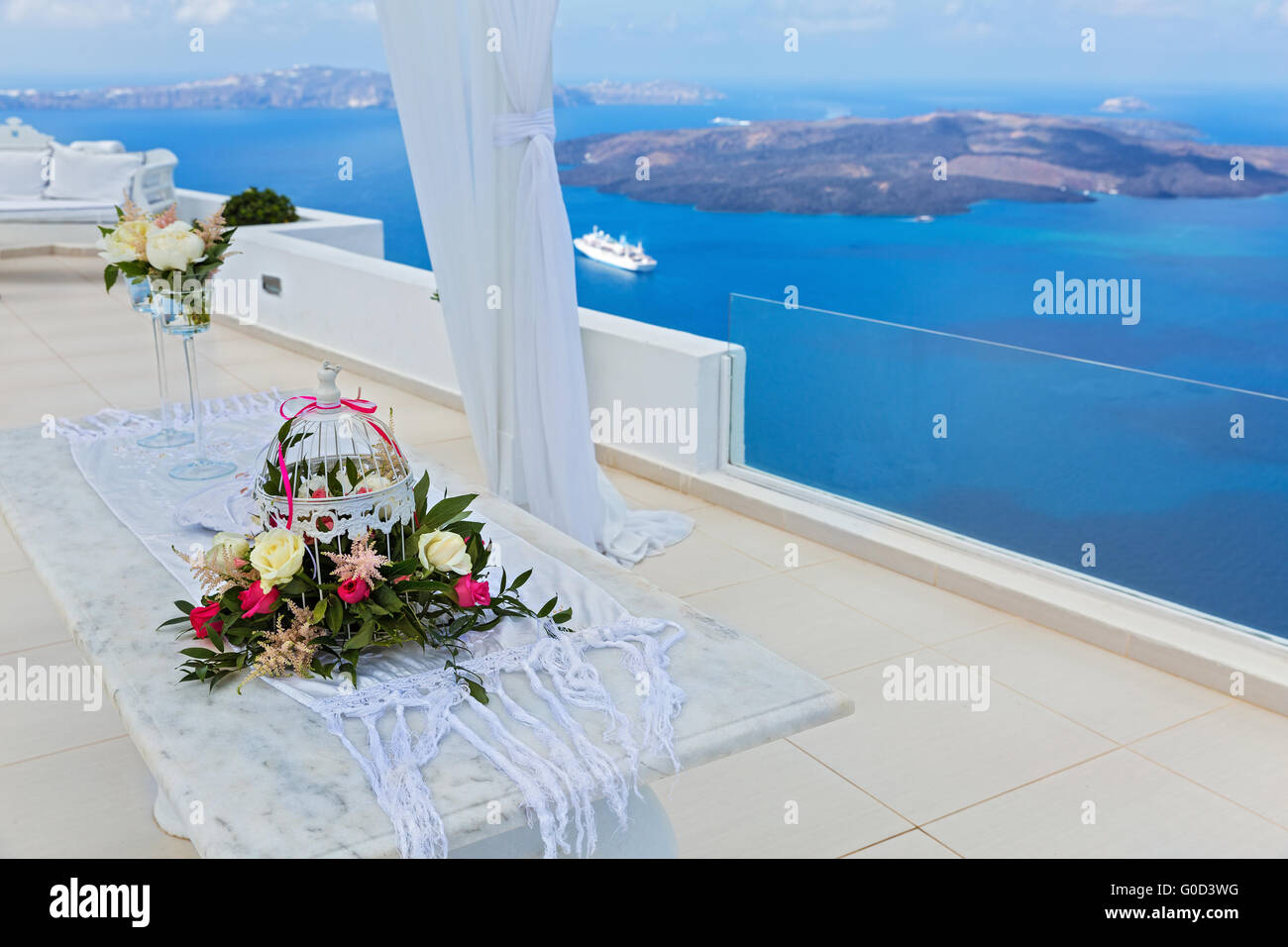 Decorazioni Per Matrimoni Con Vista Mare Santorini Grecia Foto Stock Alamy