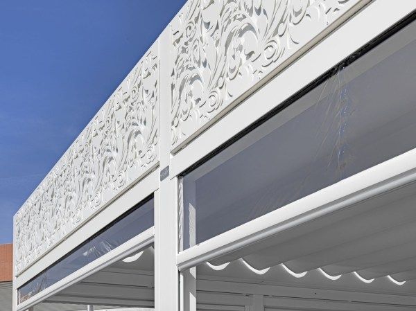 Paravento Per Dehors In Alluminio E Pvc Gazebo Con Decoro Floreale Cagis