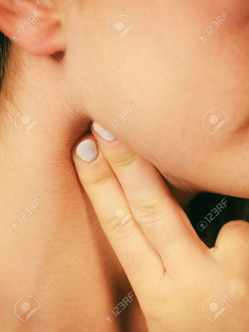 Immagini Stock Sanita Medicina Frequenza Cardiaca Di Impulso Donna Che Controlla Sul Collo Del Primo Piano Image