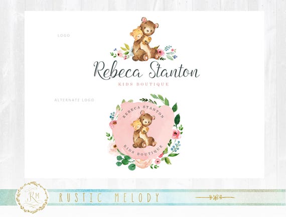 Kids Logo Design Baby Bear Logo Boutique Logo Watercolor Etsy