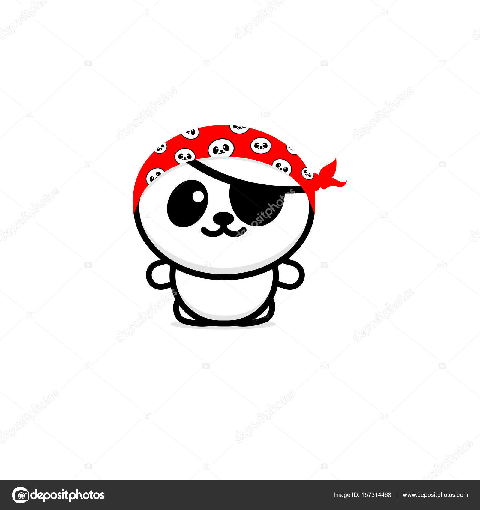 Cute Panda Pirate With A Kerchief On Her Head Vector Illustration Baby Bear Logo New Design Line Art Chinese Teddy Bear Black Color Sign Simple Image Picture With Animal Stock Vector C