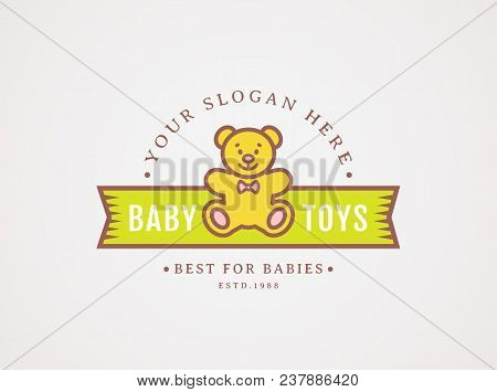 Kids Shop Logo With Teddy Bear Cute Kindergarten Vector Image