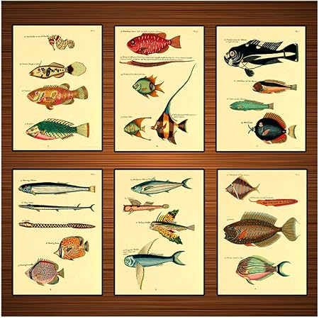 Ad Enciclopedia Delle Specie Ittiche Vintage Poster Creature Marine Poster Dipinti Su Tela Classici Decorazioni Per La Casa Da Parete Gift 50x70cmx6pcs Nessuna Cornice Amazon It Casa E Cucina