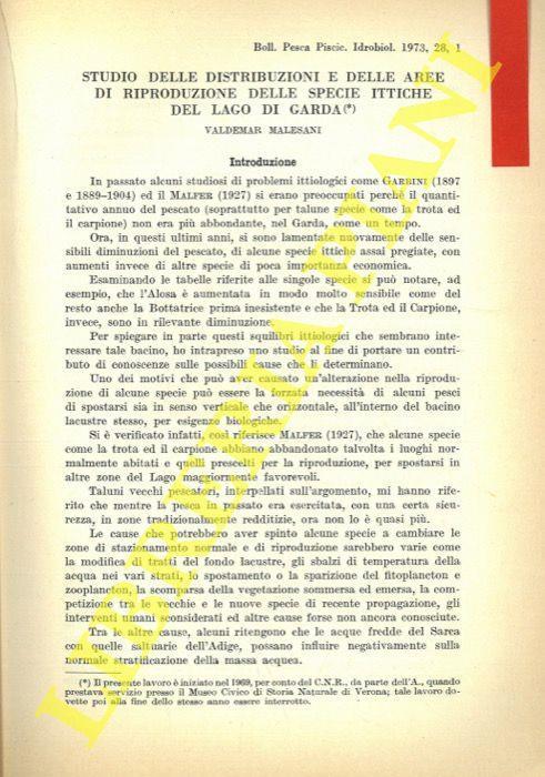 Studio Delle Distribuzioni E Delle Aree Di Riproduzione Delle Specie Ittiche Del Lago Di Garda Valdemar Malesani Libro Usato Nd Ibs