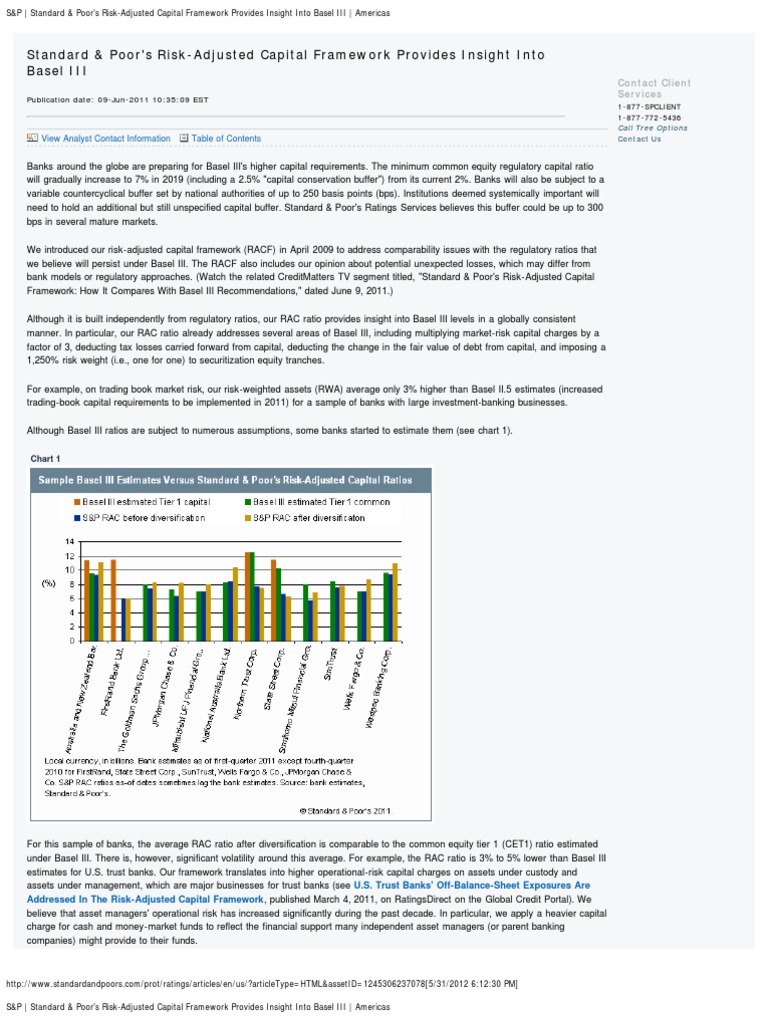 S P Standard Poor S Risk Adjusted Capital Framework Provides Insight Int Basel Ii Basel Iii