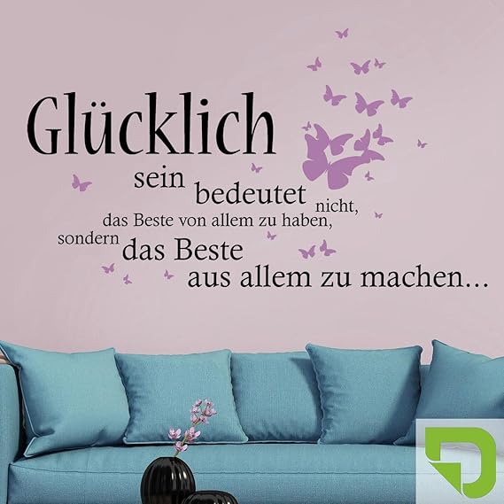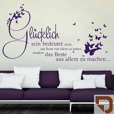 Glücklich sein bedeutet nicht, das beste von allem zu haben, sondern das beste aus allem zu machen Dieser bewegende wandtattoo spruch wird sie immer wieder daran Glucklich at amazon unfastened delivery on qualified orders 4Zero rating for amazon. Glücklich sein bedeutet nicht, das Beste von allem zu haben, sondern das Beste aus allem zu machen Das Wandtattoo Das Beste aus allem machen wird von dekorativen WandtattoSchmetterlingen umrahmt Der Wandspruch ist in vielen Farben und drei Größen erhältlich. Du bist mein Anker, wenn Wellen und Sturm sich in mir verfangen.