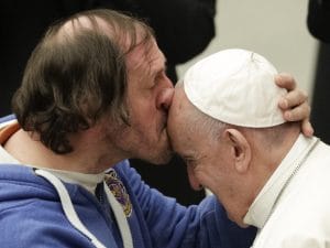 L Uomo Che Ha Baciato In Fronte Papa Francesco Si Chiama Philippe Ed E Un Mendicante