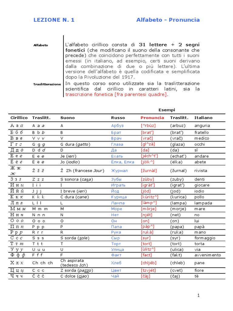 Alfabeto Russo Lezione 1 Docsity