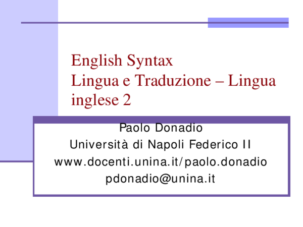 Pdf English Syntax Lingua E Traduzione Lingua Inglese 2 Luisa Passaro Academia Edu