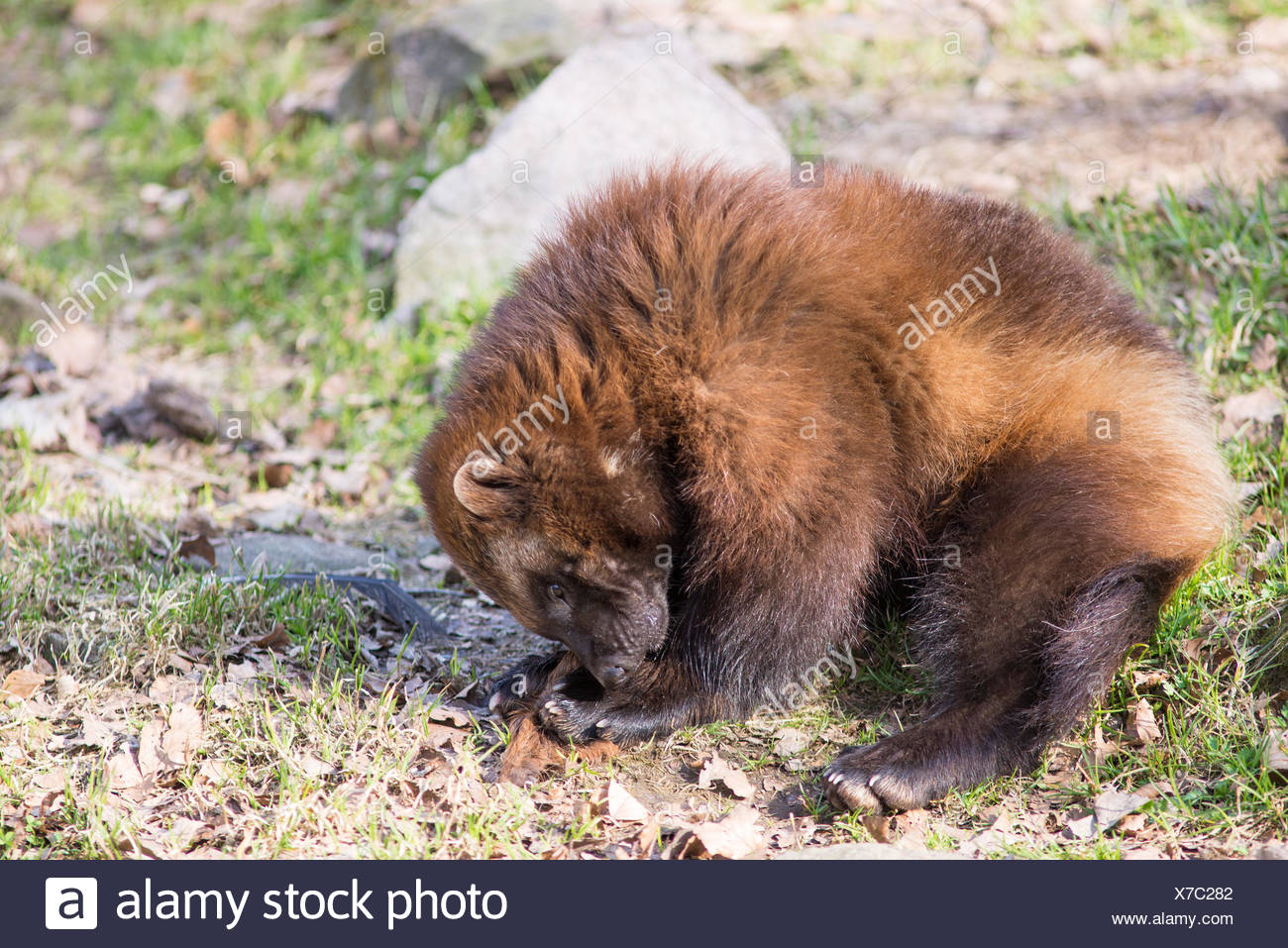 Wolverine Gulo Gulo Seduti Su Un Prato Chiamato Anche Ghiottone Carcajou Skunk Orso O Quickhatch Foto Stock Alamy